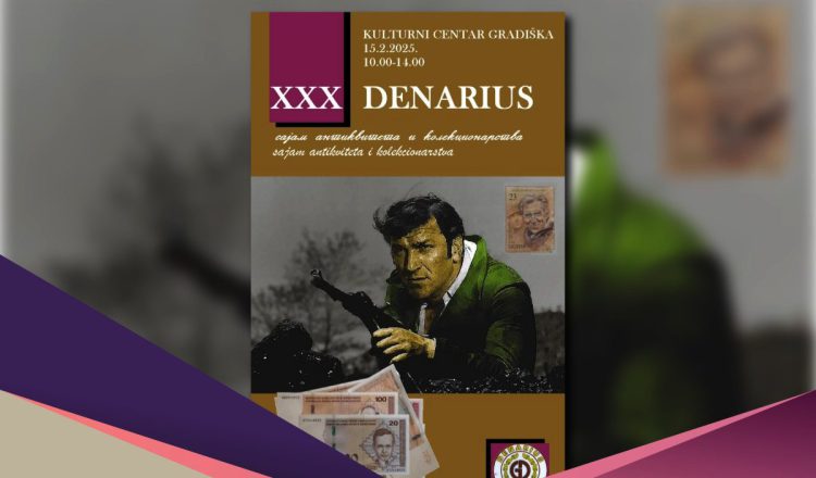 Udruženje kolekcionara i ljubitelja istorije „Denarius“ Gradiška organizuje jubularni 30. Međunarodni sajam antikviteta i kolekcionarstva u subotu, 15. februara 2025. godine, sa početkom u 10 časova u Kulturnom centru Gradiška.