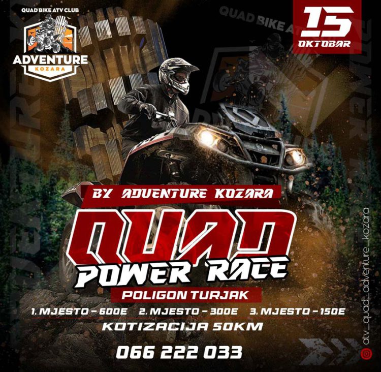 U organizaciji “ATV Cluba” po prvi put u Gradišci, a četvrti u BiH, biće organizovana “Quad trka” u BiH, pod nazivom “Quad adventure Kozara” u mjestu Turjak kod Gradiške.