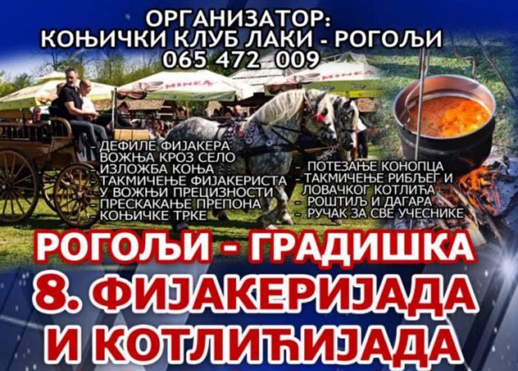 Selo Rogolji kod Gradiške i ove godine biće domaćin jedinstvene manifestacije koja okuplja ljubitelje tradicije, konja, dobre hrane i muzike. U nedjelju, 26. aprila 2026. godine, održaće se 8. Fijakerijada i Kotlićijada, događaj koji iz godine u godinu privlači sve veći broj posjetilaca iz cijelog regiona.