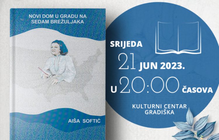 U srijedu, 21. juna sa početkom u 20 časova u Kulturnom centru Gradiška biće upriličena promocija knjige „Novi dom u gradu na sedam brežuljaka“ autora Aiše Softić.