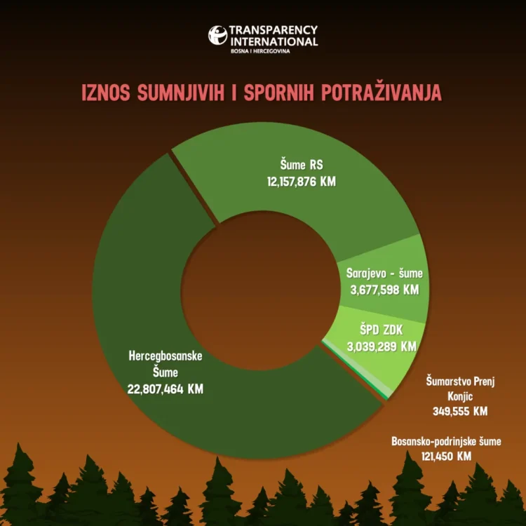 Takođe značajna sporna potraživanja preko 3 miliona KM imaju Sarajevo-šume i „Šumsko – privredno društvo Zeničko – dobojskog kantona“. Značajno je istaći  da neka od ovih javnih preduzeća koja se bave istim ovim poslom nemaju sumnjivih potraživanja kao „Bosanskohercegovačke šume“ ili Šume Tuzlanskog Kantona.