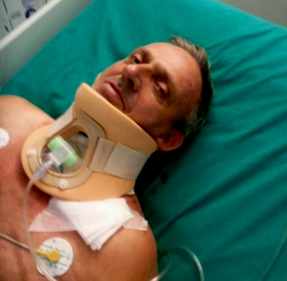 “Lobanja mu je pukla na dva mjesta, imao je jak potres mozga te i dalje ima krvi na mozgu. Nadkoljenica mu je operisana i sad ima šipku u nozi, a prije dve godine operisao je karcinom glasnih žica gdje je ostao bez glasa skroz”.