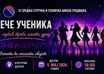 JU Srednja stručna i tehnička škola Gradiška organizuje "Veče učenika“ pod sloganom "Za ljubav treba imati dušu“, koje će biti...