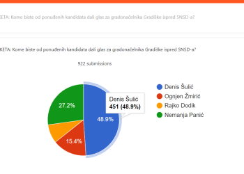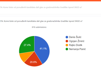 Prije sedam dana Micro mreža je kreirala anketu pod nazivom “Kome biste od ponuđenih kandidata dali glas za gradonačelnika Gradiške...