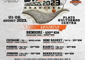Na platou ispred Kulturnog centra 01.08.2023. godine počinje turnir ”Streetball 3X3 Gradiška 2023”. Košarkaški spektakl u gradu na Savi trajaće...