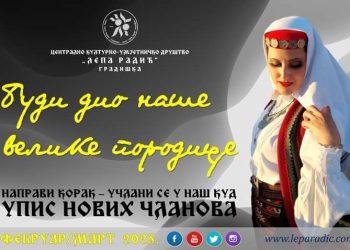 Upis novih članova u Centralno kulturno-umjetničko durštvo "Lepa Radić" Gradiška otvoren je i u martu mjesecu. Iz ovog udruženja žele...