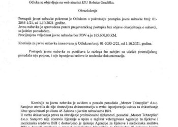 Bolnica u Gradišci je poništila tender za nabavku medicinskog kiseonika u vrijednosti od 165.500 KM, saznaje portal Buka. Razlog za...