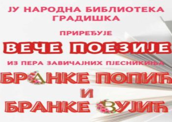 Narodna biblioteka Gradiška organizuje veče poezije Branke Popić i Branke Vujić, u srijedu, 28. februara od 18 časova . Predstavljanje...