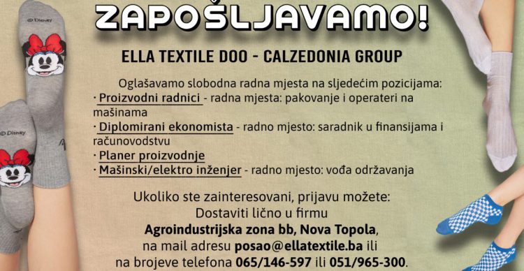 Firmi “Ella Textile – Calzedonia group” sa sjedištem u Novoj Topoli potreban veći broj radnika. U nastavku teksta detaljniji opis.
