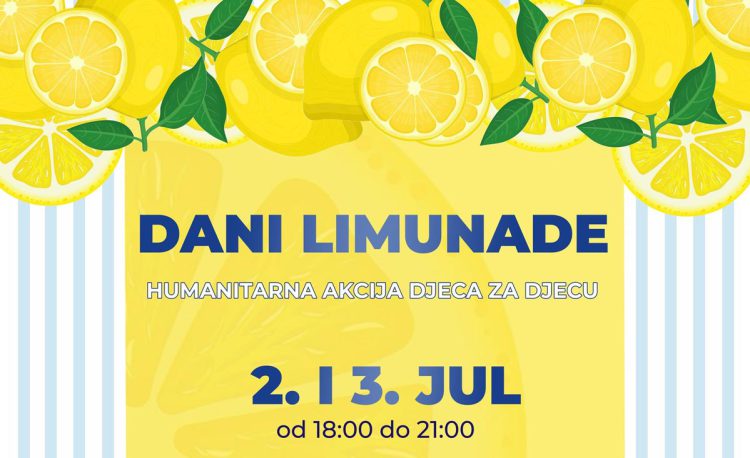 Na platou ispred Kulturnog centra u Gradišci danas i sutra, 2. i 3. jula, od 18,00 do 21,00 časova, održava se topla i vesela humanitarna akcija „Dani limunade“, pod sloganom „Djeca za djecu“.