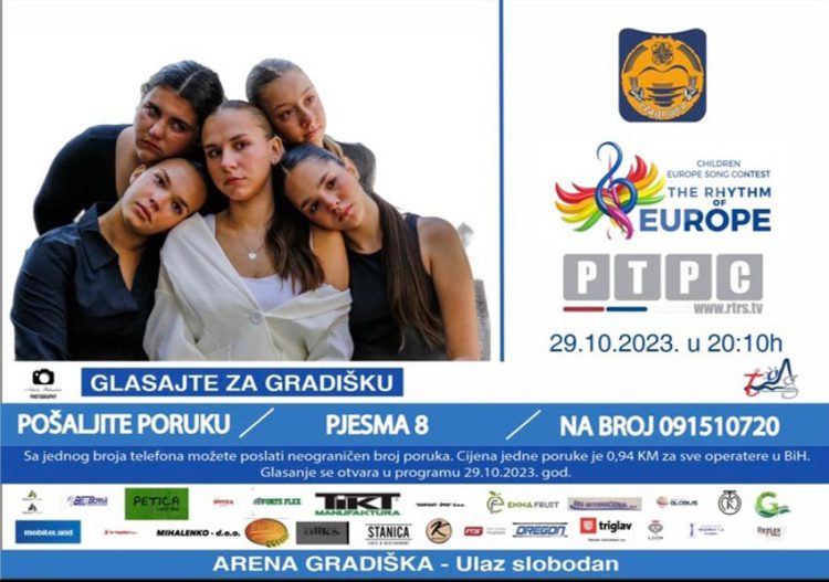 U nedjelju, 29. oktobra 2023. godine sa početkom u 20:10 časova u Sportskoj dvorani „Arena“ u Gradišci biće održan dječiji i omladinski festival „Republika Srpska u ritmu Evrope“.
