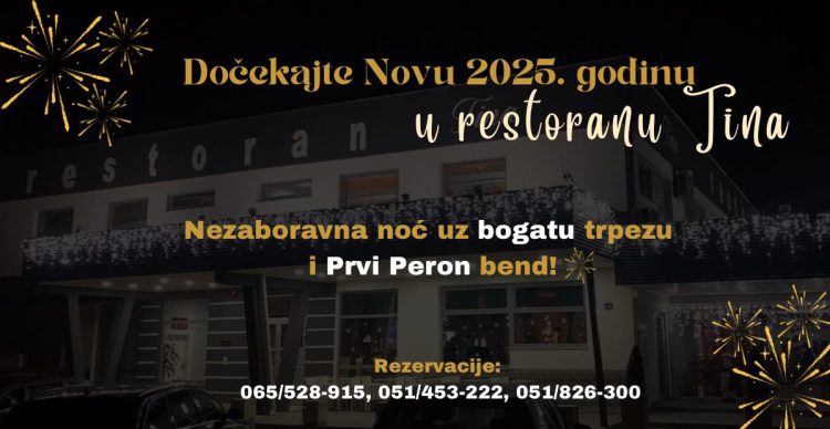 Restoran “Tina” Gradiška i ove godine organizuje doček Nove 2025. godine uz bogatu ponudu hrane i pića, kao i muziku uživo.
