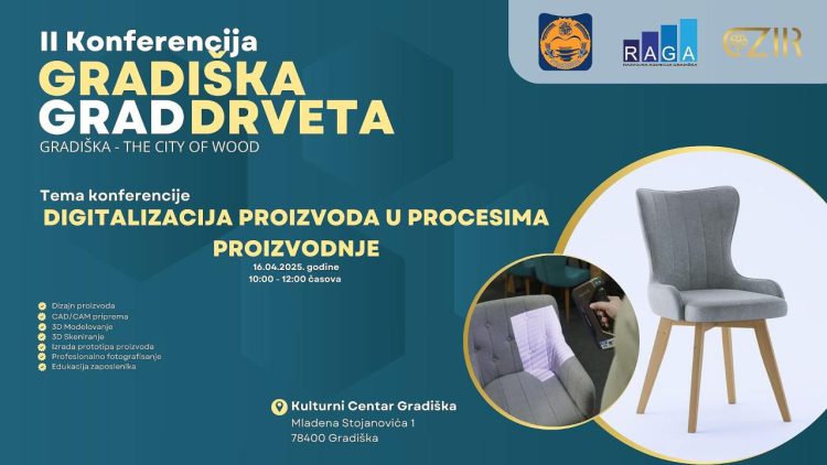 Razvojna agencija Gradiška (RAGA) i Centar za istraživanje i razvoj (CZIIR) organizovaće u srijedu, 16. aprila Drugu konferenciju „Gradiška – grad drveta“ u Kulturnom centru Gradiška, u 10 časova.