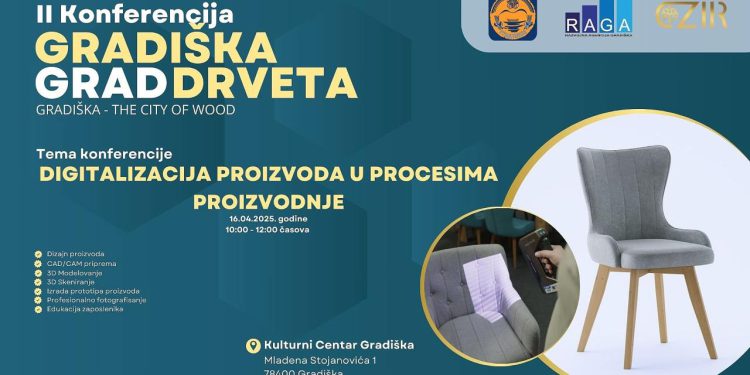 Razvojna agencija Gradiška (RAGA) i Centar za istraživanje i razvoj (CZIIR) organizovaće u srijedu, 16. aprila Drugu konferenciju „Gradiška – grad drveta“ u Kulturnom centru Gradiška, u 10 časova.
