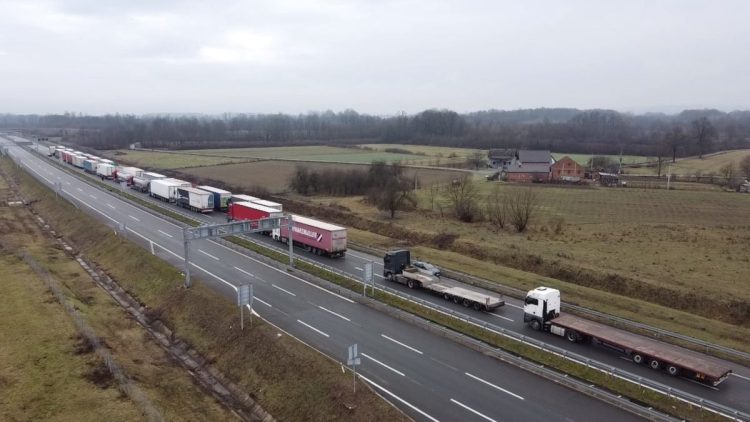 Juče započeti protesti kamiondžija iz BiH, Srbije, Crne Gore i Sjeverne Makedonije ušli su u drugi dan, a više desetina kamiona stoji u blizini graničnog prelaza u Gradišci kao i na Carinskom terminalu u Čatrnji gdje je blokiran ulaz i izlaz iz BiH za teretni saobraćaj.