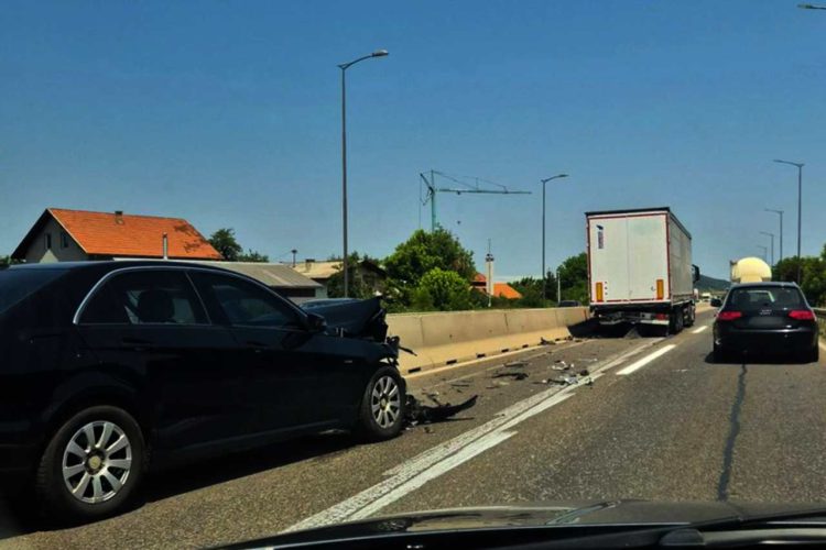Kako javljaju vozači, udes se desio prije izlaza za Trn. Na mercedesu je, kako se može vidjeti na fotografijama, nastala materijalna šteta.