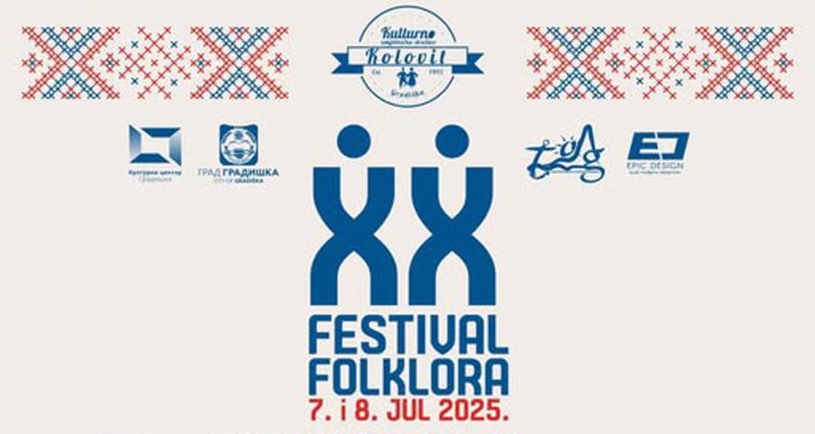 Ljubitelji folklora i tradicionalne igre imaće priliku da uživaju u dvodnevnoj međunarodnoj smotri folklora 7. i 8. jula, kada se na ljetnoj pozornici Kulturnog centra Gradiška održava jubilarni XX Festival folklora.