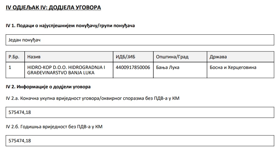 Grad Gradiška je oglasio ponudu gdje je bio spreman najviše da plati 586.945,66 KM, dok je Hidrokop bio najpovoljniji sa ponudom od 575.474,18 KM. Pomenuta firma ima rok od šest mjeseci da izvrši ugovorom predviđene obaveze.