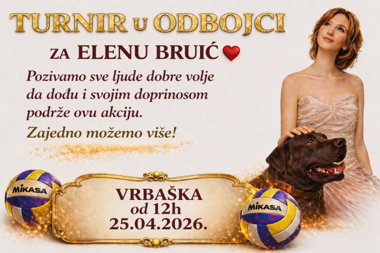 Humanitarni turnir u odbojci, sa ciljem prikupljanja pomoći za liječenje djevojčice Elena Bruić, biće održan u subotu, 25. aprila, u 12 časova u Osnovna škola Mladen Stojanović Vrbaška.