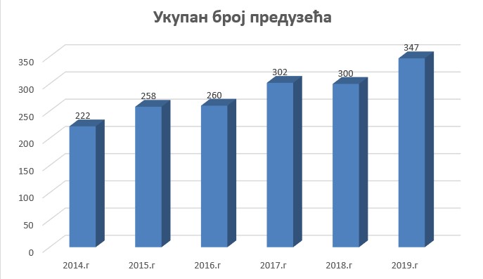 Broj preduzeća iz ove oblasti se sa 222, koliko ih je bilo registrovano 2014. godine, u 2019. povećao na 347.
