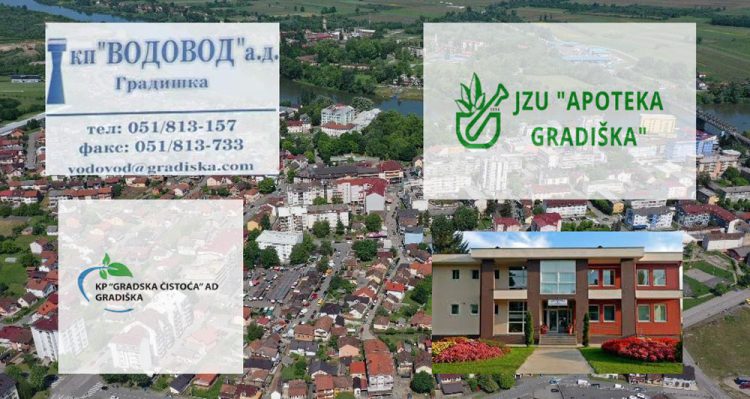 U tekstu ćemo se baviti poslovanjem šest preduzeća i ustanova u vlasništvu građana Gradiške: KP “Vodovod” Gradiška, KP “Gradska čistoća” Gradiška, JZU “Dom zdravlja” Gradiška, JZU “Apoteka” Gradiška, JP Sportski centar “Servitijum” Gradiška i JP “Radio-televizija” Gradiška.