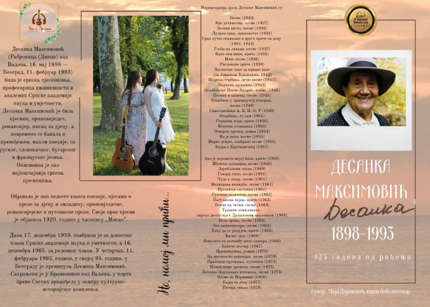 JU Narodna biblioteka Gradiška obilježava 125 godina od rođenja Desanske Maksimović