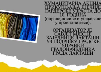 Savjet mjesene zajednice Laktaši uz podršku Gradske uprave i gradonačelnika grada Laktaši, organizuje akciju prikupljanja dječije garderobe uzrasta do 10...
