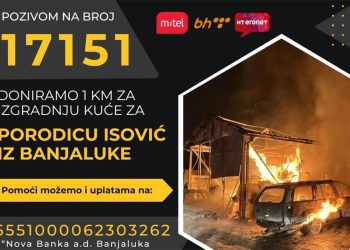 Za pomoć porodici Isović iz Banjaluke, kojoj je sinoć veliki požar progutao svu imovinu aktivan je humanitarni broj 17151. Ovaj...