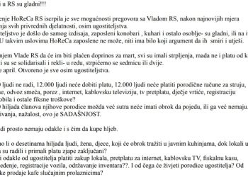 Udruženje ugostitelja “HORECA” saopštava da ovo udruženje neće snositi nikakvu odgovornost za eventualne proteste građana koji rade u ovoj grani...