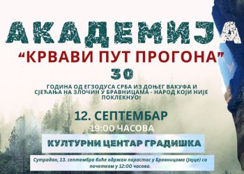 U organizaciji Zavičajnog udruženja „Srba Donjovakufljana Gradiška“ biće održana Akademija "Кrvavi put progona", kojom će biti obilježeno 30 godina od...