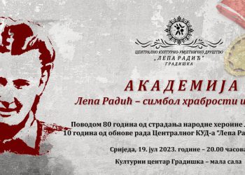 Centralni KUD "Lepa Radić" Gradiška organizuje Akademiju "Lepa Radić - simbol hrabrosti i slobode" posvećenu 80. godišnjici od stradanja narodne...