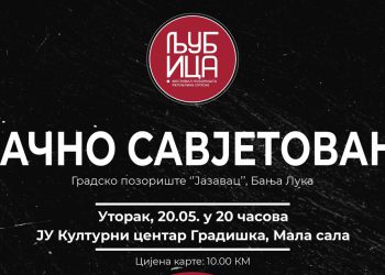 Četvrte večeri festivala „Ljubica“, koji se održava u Maloj sali KC Gradiška, publici će se predstaviti Gradsko pozorište „Jazavac“ iz...