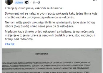Već dvije privatne firme u Srpskoj obavijestile su svoje zaposlene da se moraju vakcinisati protiv virusa korona, jer im u...