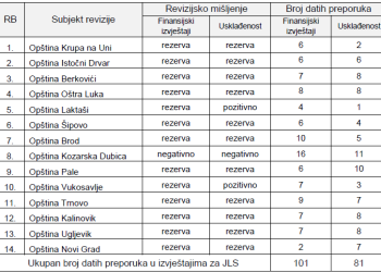 Nijedna opština u Republici Srpskoj u kojima je izvršena revizija za prošlu godinu nije dobila pozitivno mišljenje o finansijskim izvještajima,...