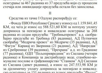 Za socijalno zbrinjavanje 467 radnika koji su ostali na ulici jer je njihovih 37 preduzeća propalo, iz Budžeta Republike Srpske...