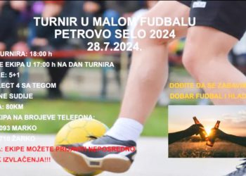 Omladina Petrovog Sela organizuje turnir u malom fudbalu "Petrovo Selo 2024" koji će se održati u nedjelju 28. jula na...