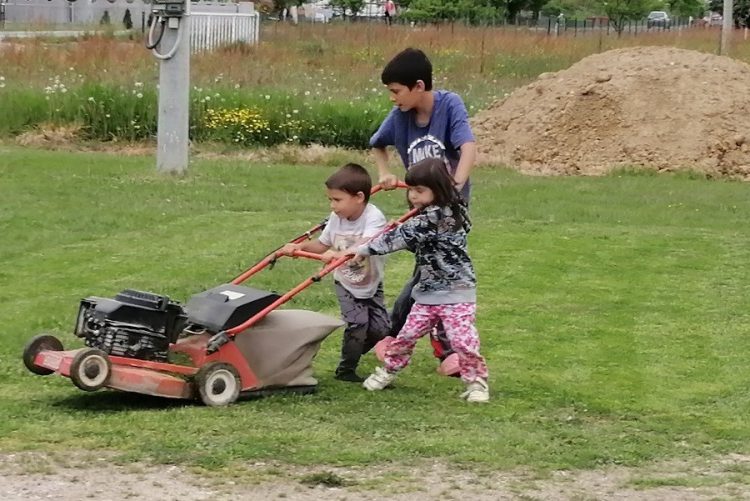 Zato su mali Misimovići opsjednuti kosilicom, mašinama, alatkama… Za njih je ovaj posao, pod nadzorom roditelja, veliki izazov kojem ne mogu odoljeti.