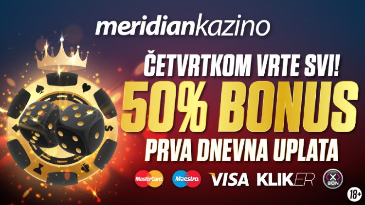 Meridian online kazino ovog četvrtka nudi sjajnu nagradu za tvoj prvi depozit. Četvrtkom vrte