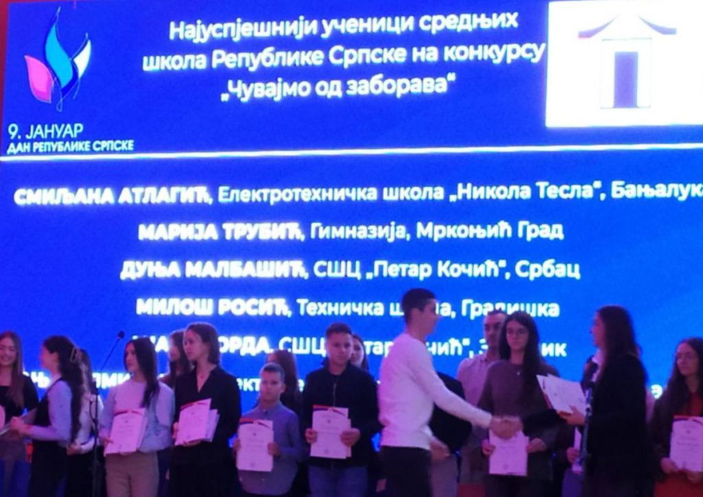 Zapažen uspjeh ostvarili su i učenici iz Srpca. Treće mjesto najuspješnijih učenika srednjih škola na konkursu “Čuvajmo od zaborava”, osvojila je učenica Dunja Malbašić iz CSŠ ,,Petar Kočić”, a takođe treću nagradu za najbolji likovni rad osvojila je Jana Dragojević, učenica devetog razreda Osnovne škole „Jovan Jovanović Zmaj“ Srbac.