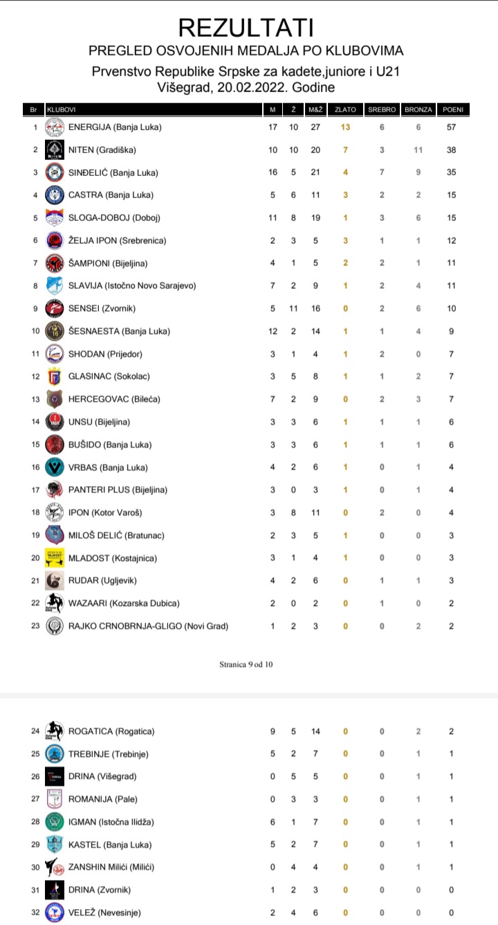 Titulom šampiona Republike Srpske za ovu godinu okitili su se Marija Zjajić (U21 borbe -61kg), Milana Šukalo (U21 borbe +68kg), Nebojša Ratković (kadeti kate), Marija Zjajić, Ivana Šukalo, Jovana Subotić (U21 žene, kate ekipno), Milana Šukalo, Marija Zjajić, Jovana Subotić (U21 žene, borbe ekipno), Danilo Stojnić, Damjan Golić, Aleksandar Babić (U21 muškarci, kate ekipno), Nebojša Ratković, Boris Zagorac, Đorđe Šmitran (Kadeti-juniori, kate ekipno).