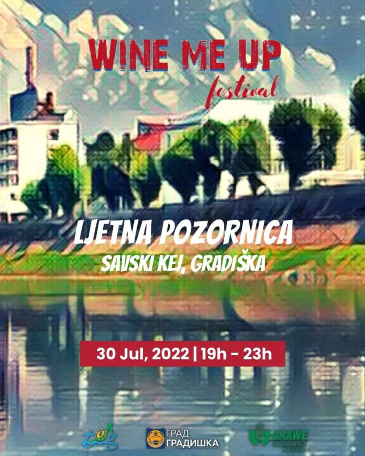 Nakon uspješno organizovanog prvog festivala „Wine Me Up“ ponovo je u Gradišci 30. jula na lokaciji Ljetna bina Zavičajnog muzeja Gradiška (u slučaju lošeg vremena biće u Kulturnom centru ulaz od DM-a).