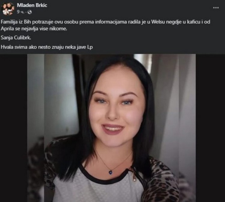 Sanja Ćulibrk iz Bosne i Hercegovine, nestala je u Velsu u Austriji, objavljeno je na društvenim mrežama, prenose Nezavisne novine.