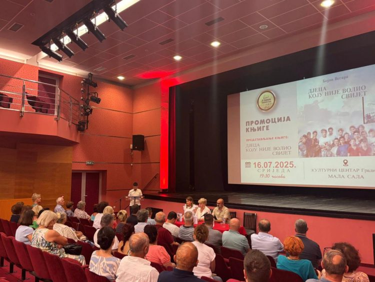 U Kulturnom centru Gradiška sinoć je promovisan roman „Djeca koju nije volio svijet“ koji kroz 57 priča ispričanih iz ugla dvanaestogodišnjaka dočarava ratna dešavanja u mjestu Hadžići kod Sarajeva.