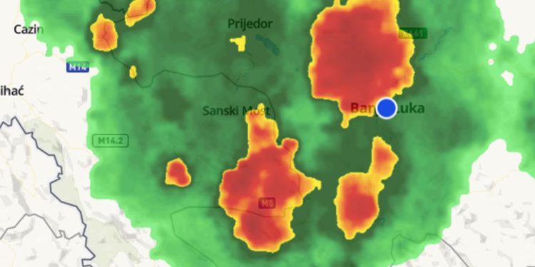 Snažno nevrijeme zahvatilo je u poslijepodnevnim satima sjeverne dijelove BiH, a sudeći prema meteo radaru na udaru će biti čitava država.