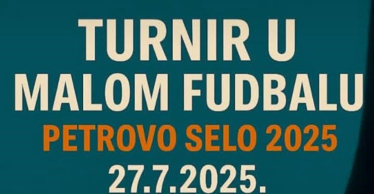 U Petrovom Selu će se 27. jula 2025. održati turnir u malom fudbalu. Početak turnira je u 18,00 časova, a izvlačenje ekipa u 17,00.