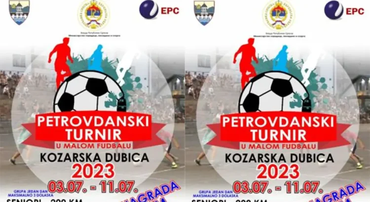 Petrovdanski turnir u malom fudbalu „Kozarska Dubica 2023“ biće održan od 3. do 11. jula u organizaciji Opštine Kozarska Dubica uz podršku Ministarstva porodice, omladine i sporta Republike Srpske.