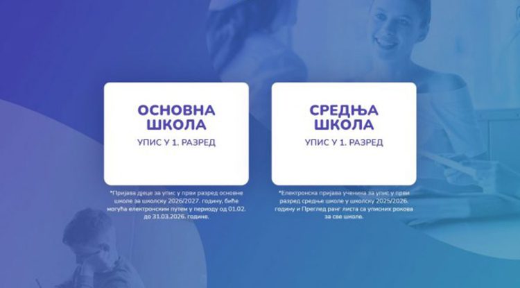 Od 1. februara 2026. godine počinje elektronska prijava djece za upis u prvi razred osnovne škole za narednu školsku godinu putem eUpis platforme.