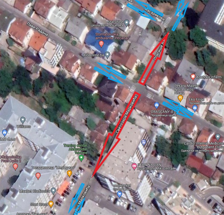Kako su pojasnili iz resornog odjeljenja, u cilju smanjenja broja konfliktnih tačaka i povećanja bezbjednosti svih učesnika u saobraćaju biće izmijenjen režim odvijanja saobraćaja na način da se u Ulici Dragiše Vasića (dio od Masarikove do Ulice Pave Radana) i u Ulici Svetozara Markovića (dio od prodavnice “Moj market” do Ulice Pave Radana) saobraćaj odvija jednosmjerno sa dozvoljenim smjerom kretanja od Ulice Pave Radana.