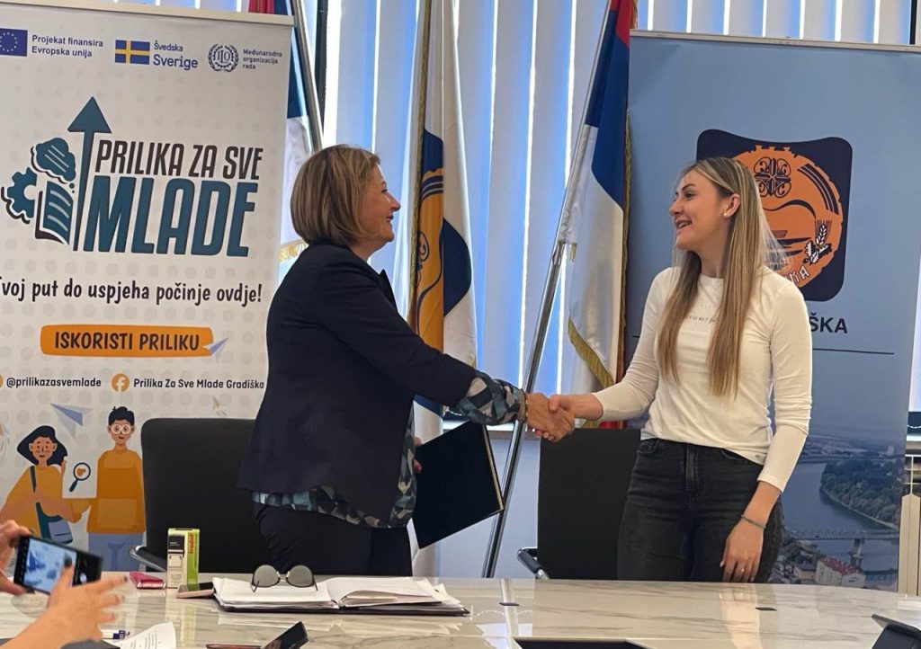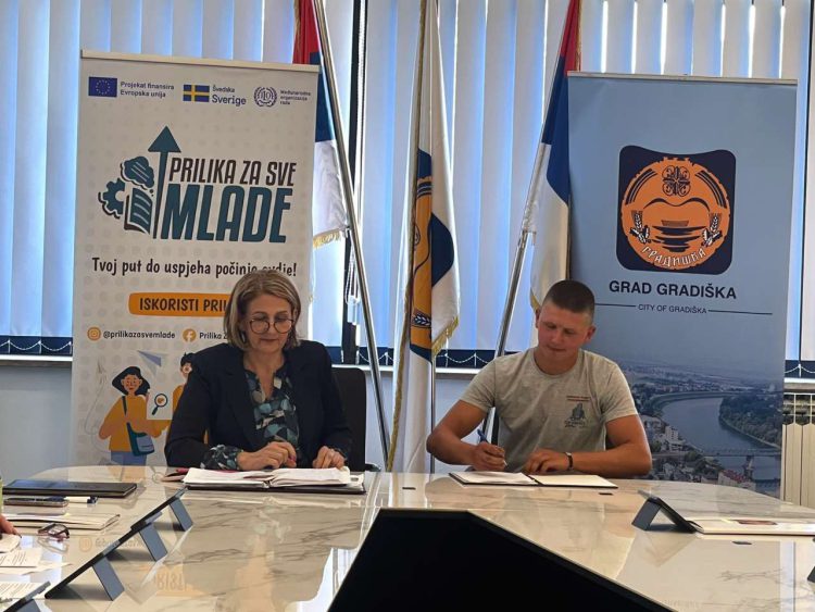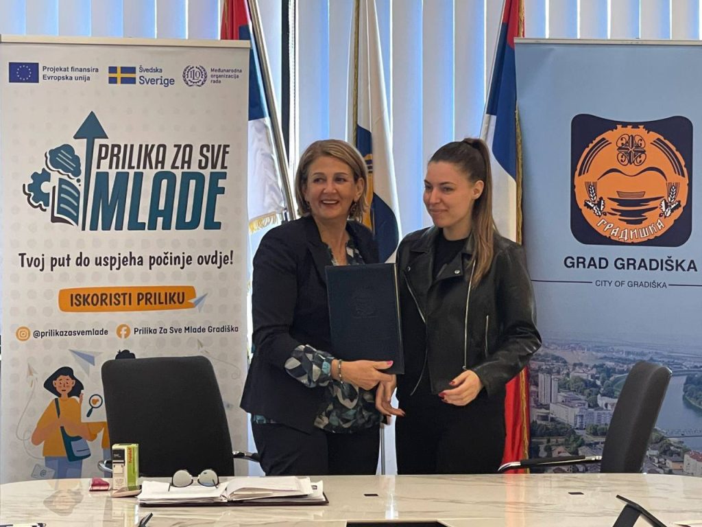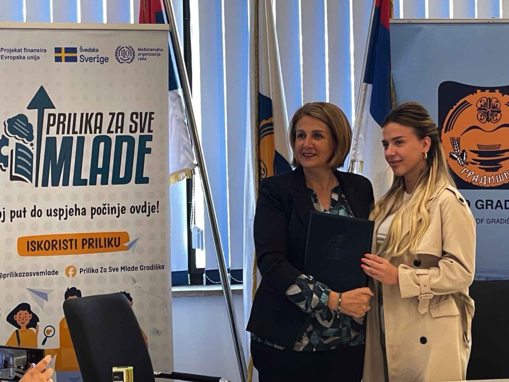 Zamjenik gradonačelnika Gradiške, Dragana Ilić potpisala je ugovore sa osam mladih koji su uspješno savladali obuku i ostvarili pravo na finansiranje pokretanja biznisa istakavši da će biti još jedan javni poziv na koji će moći da se prijave mladi starosti do 30 godina.