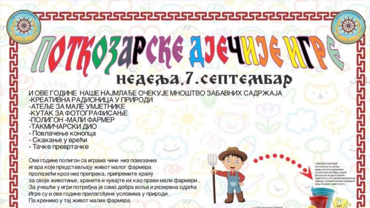 U nedjelju, 7. septembra, najmlađe stanovnike Potkozarja očekuje pravi mali spektakl zabave i igre, Potkozarske dječije igre. Manifestacija, koja je već prepoznata po bogatom programu i veselom duhu, i ove godine donosi mnoštvo zanimljivih sadržaja prilagođenih djeci i njihovim porodicama.